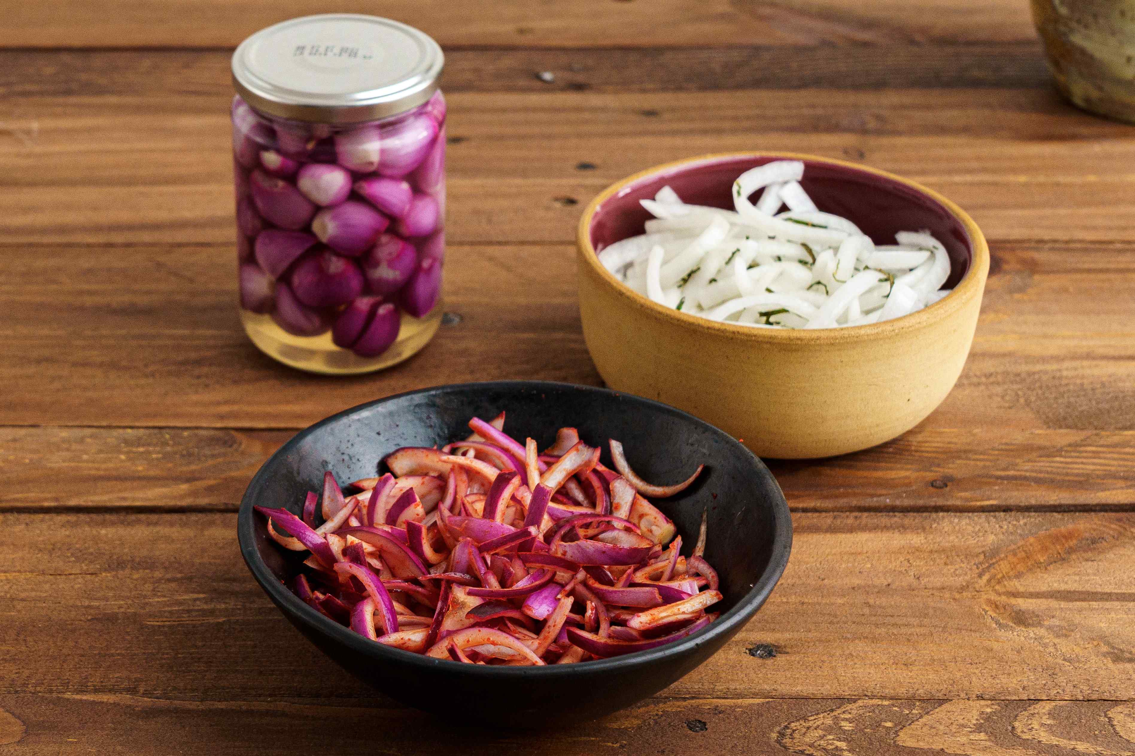 Variations - There are many variations to this recipe that you could experiment with for example with adding a chopped green chilli instead of red chili powder or you could try pickling with vinegar or lime instead of lemon juice. It's important however to use a variety of onion that is sweet and has a relatively low sulphur content. Yellow onions for example aren't the best choice for this process due to their pungent nature and high sulphur content.
